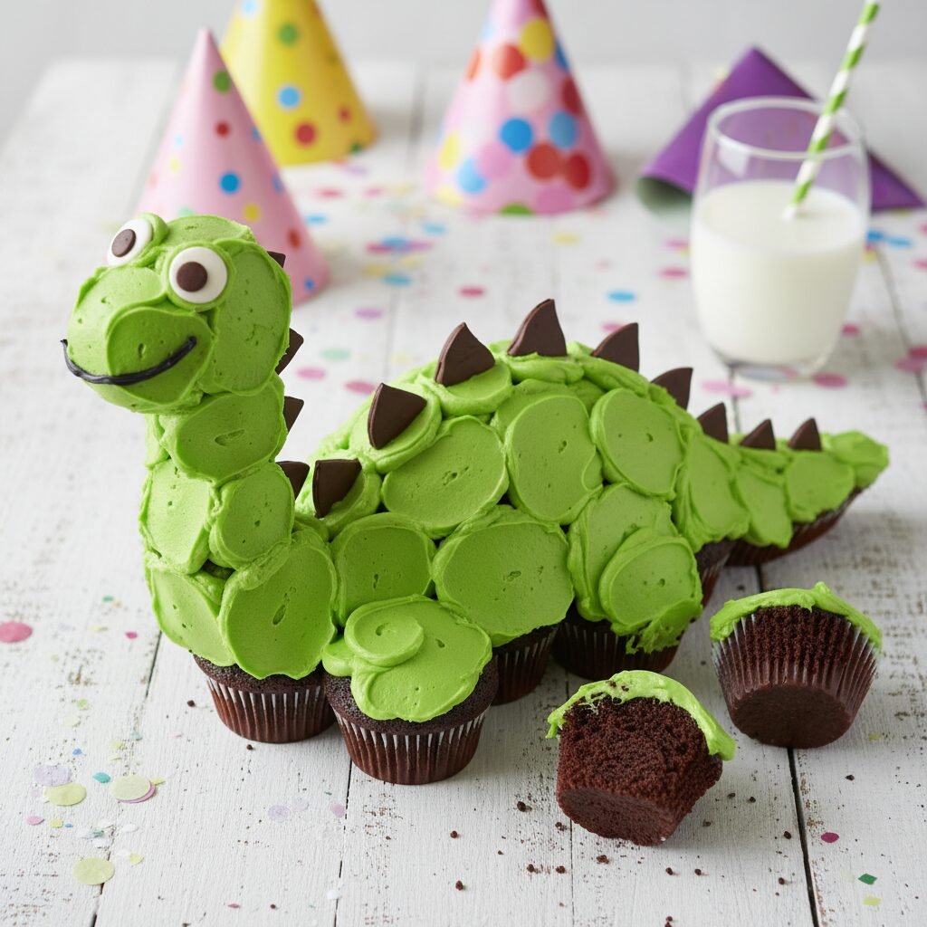 Planning a child’s birthday party often involves a chaotic mix of decorations, entertainment, and the high-pressure moment of serving the cake. Enter the pull-apart cupcake cake: the ultimate party hack that combines the visual impact of a custom sheet cake with the convenience of individual servings. This Chocolate Dinosaur Pull-Apart Cupcake Cake is designed to be the centerpiece of a prehistoric party theme, eliciting gasps of delight from kids and sighs of relief from parents.