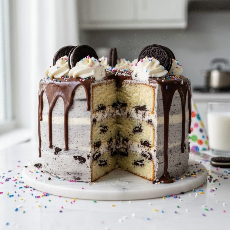 Fun Oreo Cookie Birthday Cake Recipe Celebrate in style with this decadent, three-layer Oreo Cookie Birthday Cake. Featuring a moist vanilla bean sponge packed with crushed chocolate cookies and smothered in a velvety cookies-and-cream buttercream, it is the perfect centerpiece for any party. Prep Time 45 minutes Cook Time 35 minutes Total Time 2 hours…