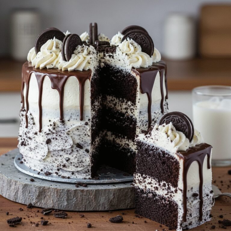 Tall Oreo Drip Cake Three Layer Cake Recipe This show-stopping Tall Oreo Drip Cake features three moist dark chocolate sponge layers, velvety Oreo buttercream, and a dramatic chocolate ganache drip. It is the ultimate Cookies & Cream celebration cake that tastes even better than it looks! Prep Time 1 hour Cook Time 35 minutes Total…